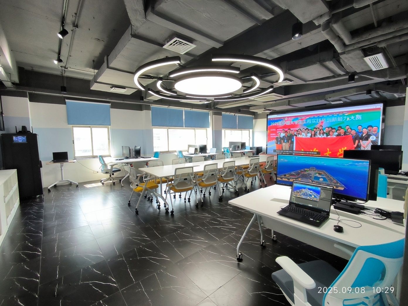 配备虚拟仿真新技术双创培养系统,致力于学科交叉,打造灵活可重构的实验空间,通过沉浸式大屏交互设备,支持多学科团队在此进行协同项目攻关与创新实践。