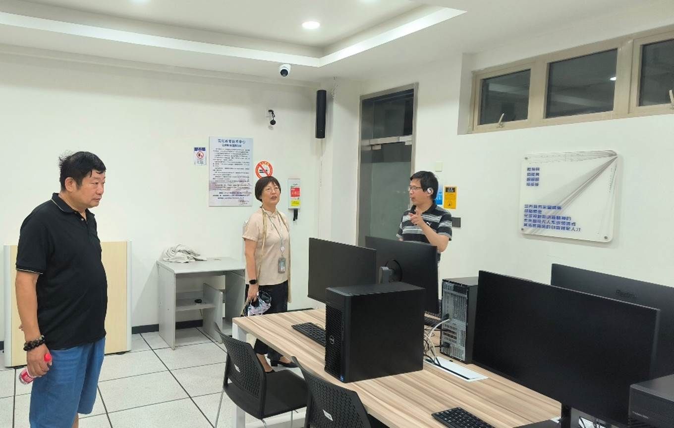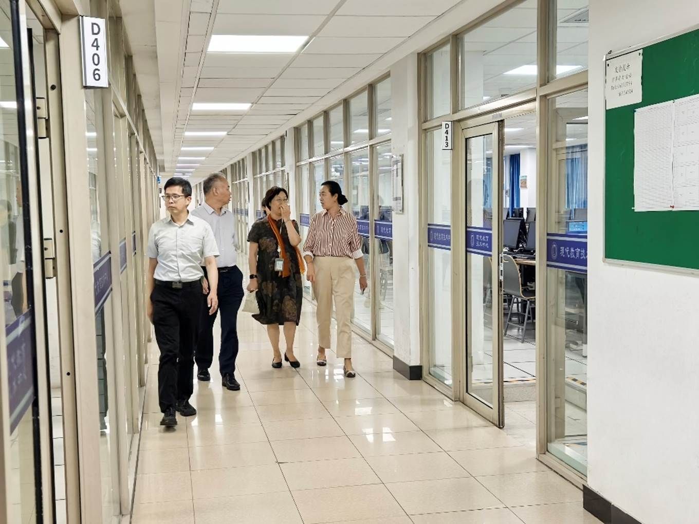 实验室全景图链接: 项目建设过程中,上海大学副校长于雪梅、教务部常务副部长彭章友、副部长顾晓英、现教中心主任陈章进、电影学院实验室主任张建荣等领导莅临计算机实验室现场视察指导工作。