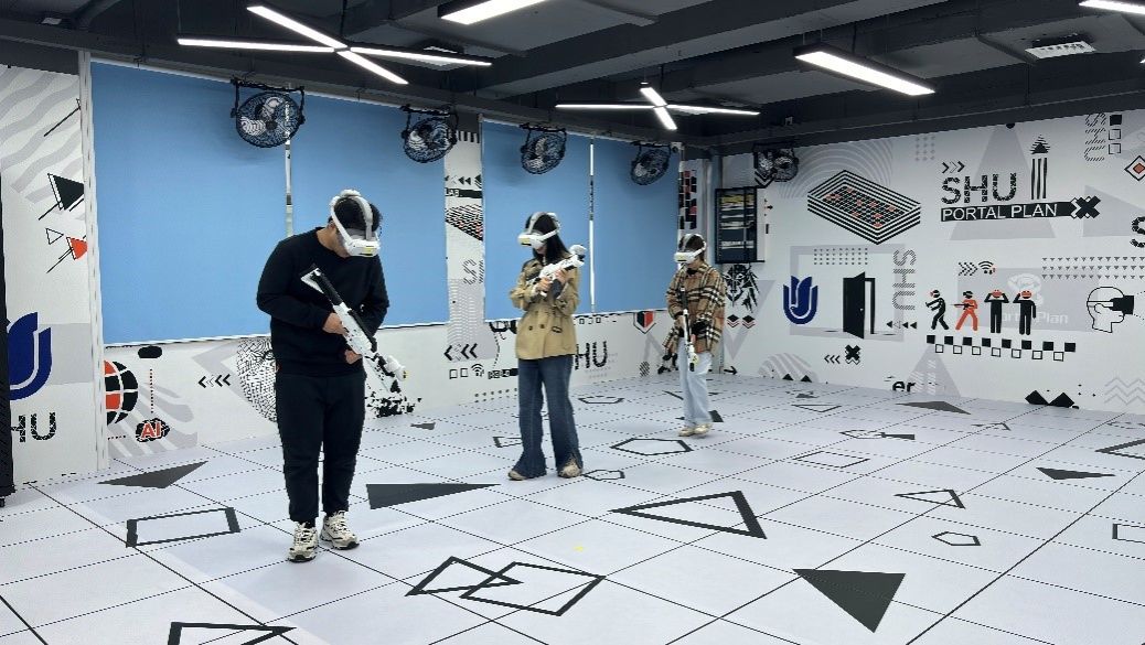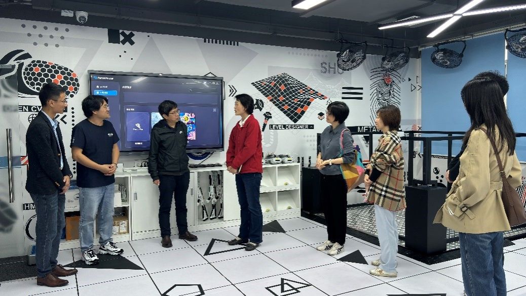 在虚拟仿真LBE大空间体验教学实验室,随行的三位同事沉浸式体验了LBE大空间项目,对其技术实现和互动效果表现出浓厚兴趣。双方进一步探讨了此类技术在卫生行业——如医学模拟训练、健康宣教等场景中推广应用的可能性,并就未来跨领域合作交换了意见。